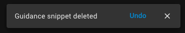 For a short period of time, you can restore the most recently deleted batch of snippets by clicking the “Undo” prompt displayed in the confirmation snackbar that appears.