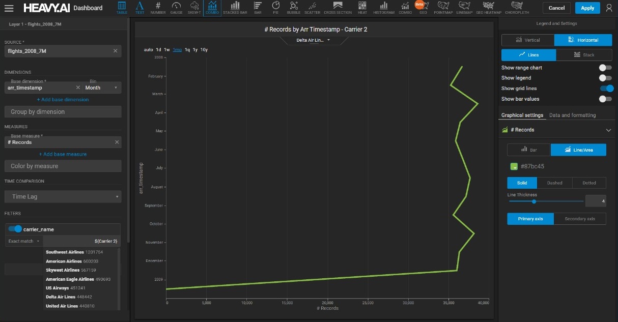 {% tab title="# Records by Arr\_timestamp - Carrier 2" %}