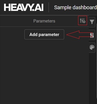 In the Parameters pane, click **Add parameter** to open the Parameter Manager. You can also click the **Open parameters manager** icon in the upper-right corner of the pane.