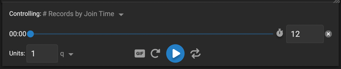 * GIF renders your animation and downloads it as a GIF, using the chart specified in the Controlling drop down. There is no way to build a gif across multiple charts at this time.
