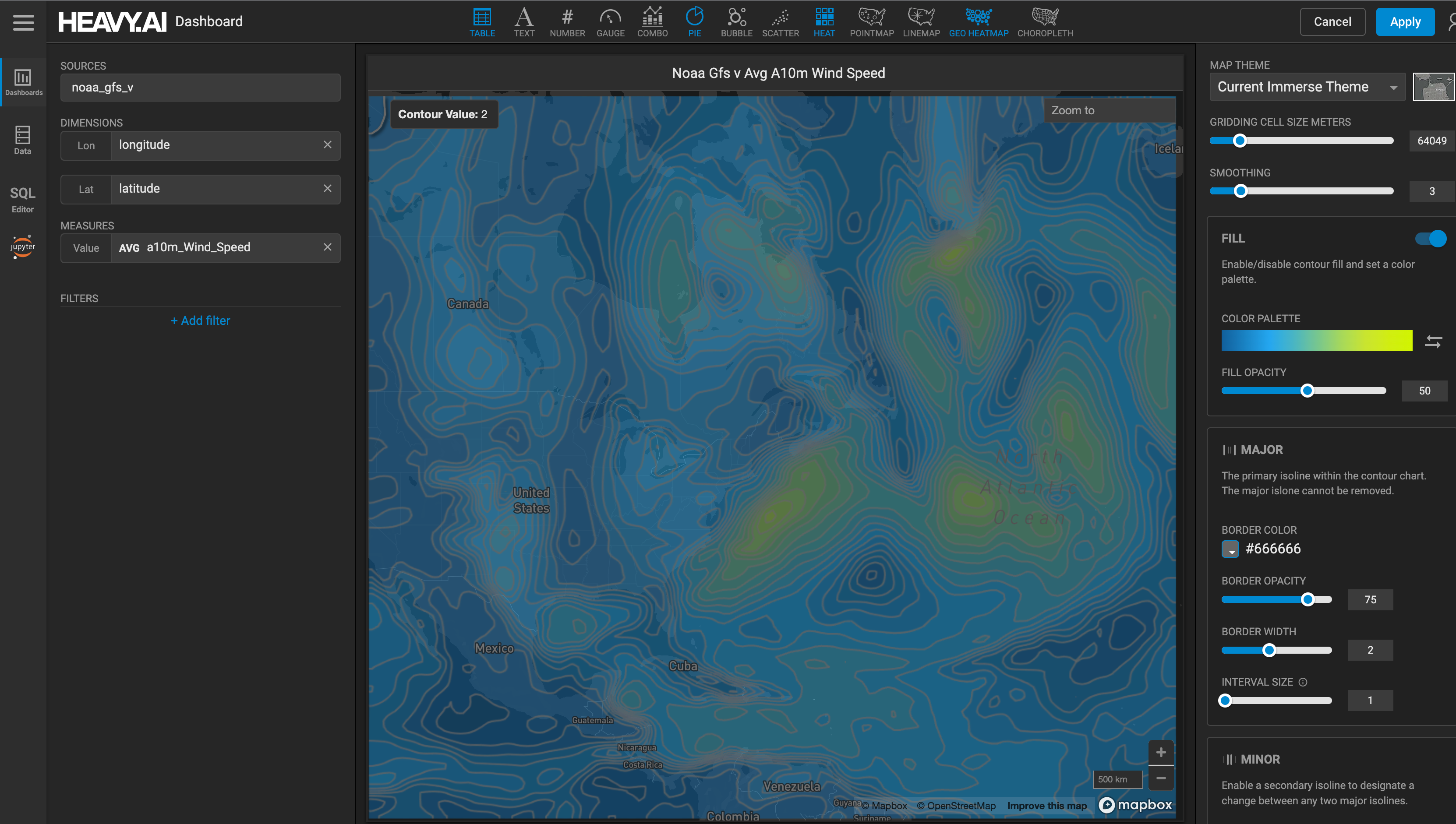 The [feature flag](https://docs.heavy.ai/v8.3.0/customization#feature-flags) `ui/enable_contour_chart` must be enabled to use the Contour chart.
