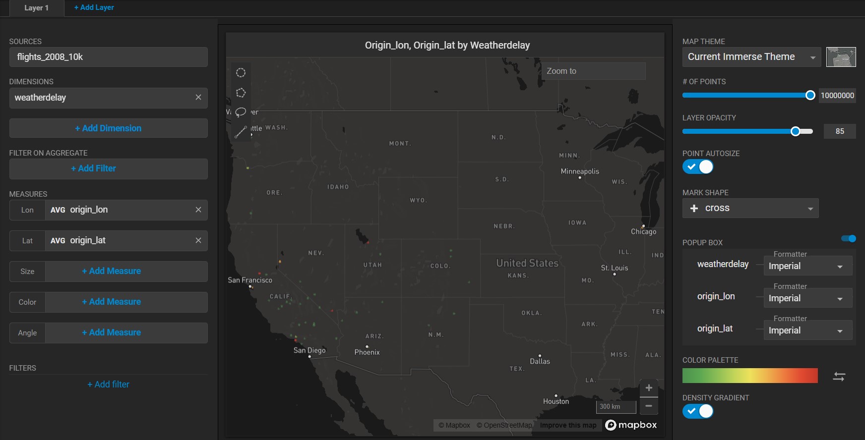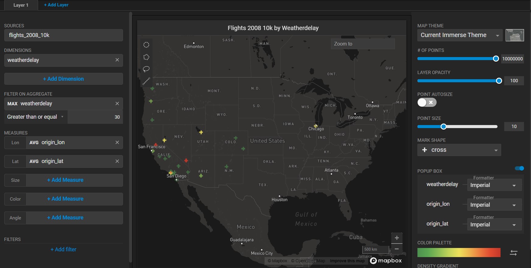For example, this Pointmap shows the origin points of flights that experienced a weather delay.